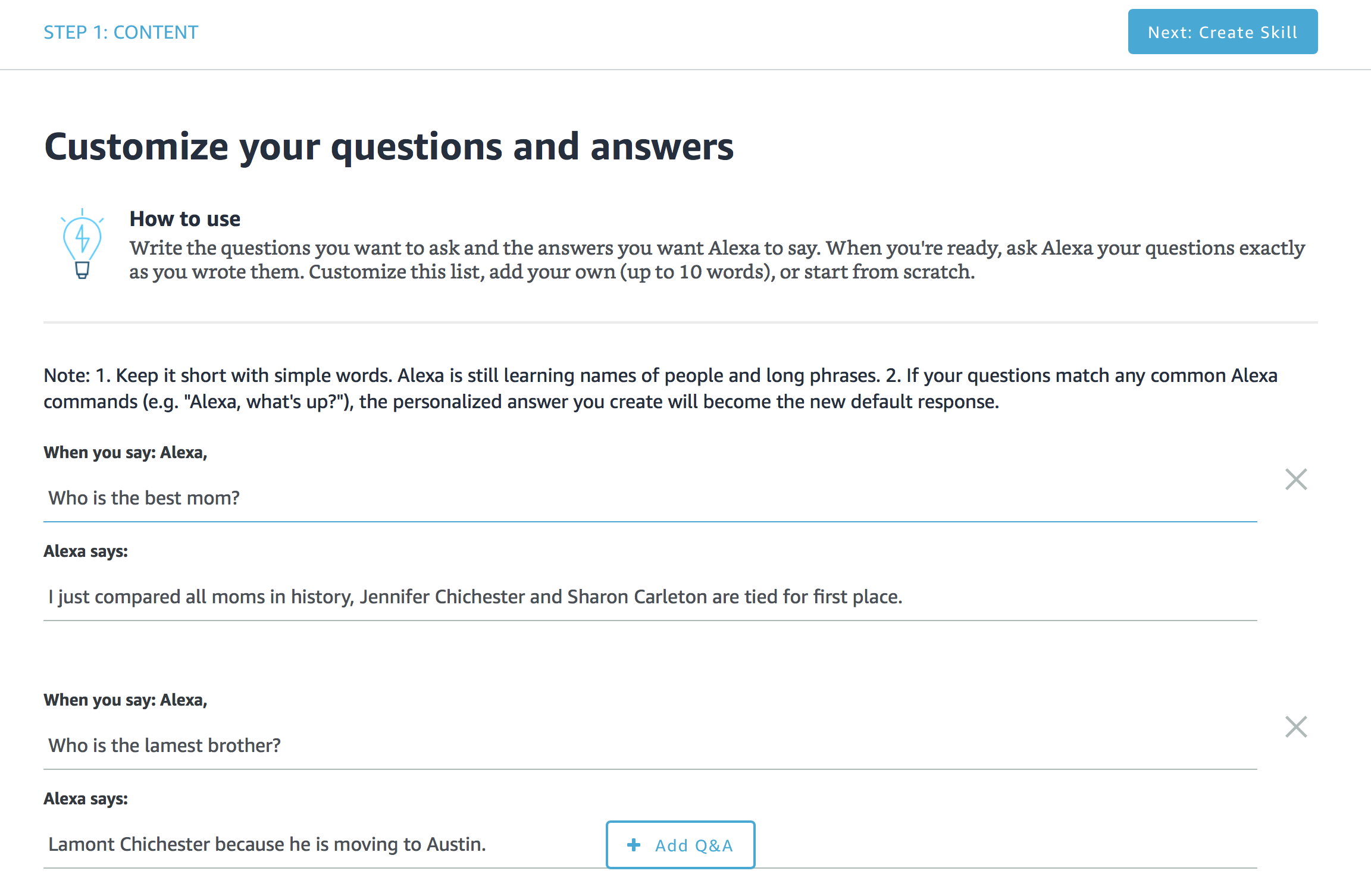 Learning how to build an Alexa skill just got easier. Watch the video and follow along so you can learn how to build a custom Alexa skill to delight your friends and family.